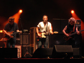 A few months after the most glorious concert experiences of my life, a friend of mine was offering around extra tickets for the last leg of Springsteen's tour, which included a mini-residency at Giants Stadium. These concerts would be the last for Bruce in the venue that vaulted him into worldwide arena rock superstardom, as the new Giants Stadium (and I'll be calling it that regardless of whatever corporate name gets stickered all over it, so deal with it, Jets fans) is set to open in 2010. Clearly I had to be there and jumped at the chance. I was met with an interesting choice: General Admission floor seats for the second-to-last night, or 100-level seats for E Street's last ever Giants Stadium show? For some, it seems like a no-brainer. Go for the tour and stadium closer, where the band is bound to pull out all the stops and, given the historical significance of the venue, there may even be a special guest or two. However, recall my Bonnaroo epiphany and you'll see why I made the choice that I did. It simply had to be the floor. After being so close to The Boss that I could see the sweat flying off of his pumping Jersey fists, there was just no way I was opting for the seats, even if it meant gambling that the second-to-last E Street show at Giants Stadium would measure up to the finale. Observe below to see why I clearly made the right choice.