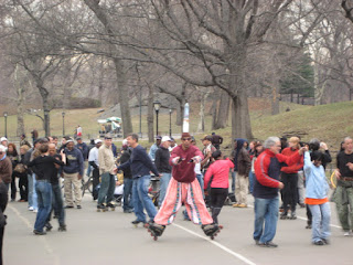 As I came around a bend in the path, the mellow, acoustic ambiance of Bon Iver quickly gave way to Central Park Roller Soul Train. This part of the walking tour is best accompanied by a the mashup mastery of Bonnaroo artist Girl Talk. And there's your countdown, kids -- 86 days! Cheeky bastard.